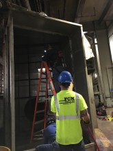 FCM employees installing the new stainless steel filter rack at International Paper’s mill in Mansfield, La. (Photo by FCM Products, Inc.)